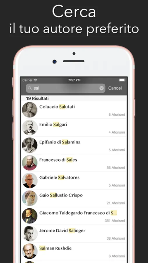 Puoi cercare gli autori per nome e cognome