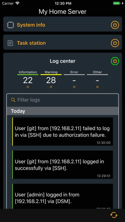 • Log center: get a quick preview of last 50 logs