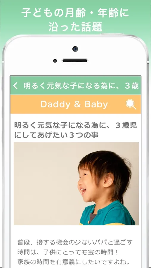 子供の月齢・年齢に沿って、個々のパパにとって最適な耳寄り情報を、好きな時間帯にお届けします!