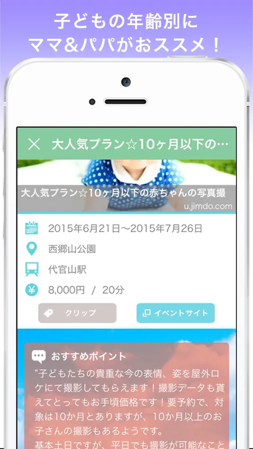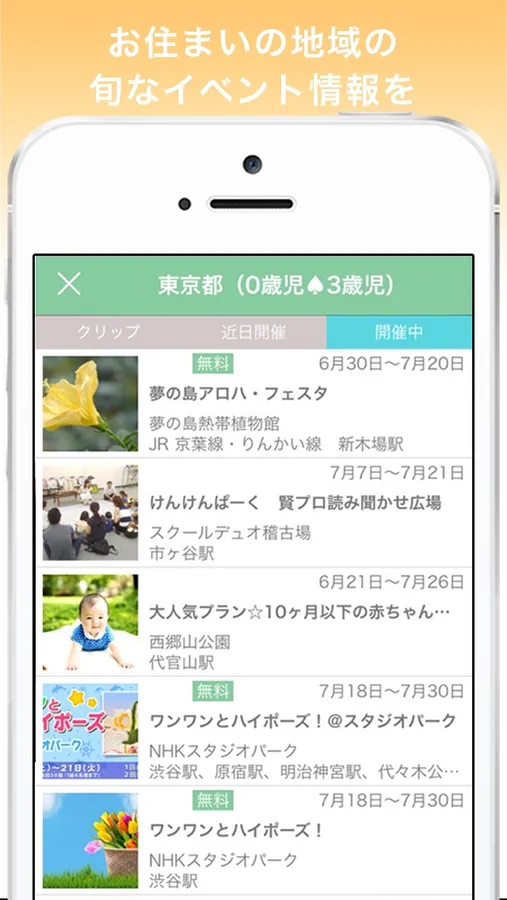 同年代のお子さんを持つパパ・ママがおススメする『親子で楽しめる、各地の旬な子連れイベント情報』が届きます。