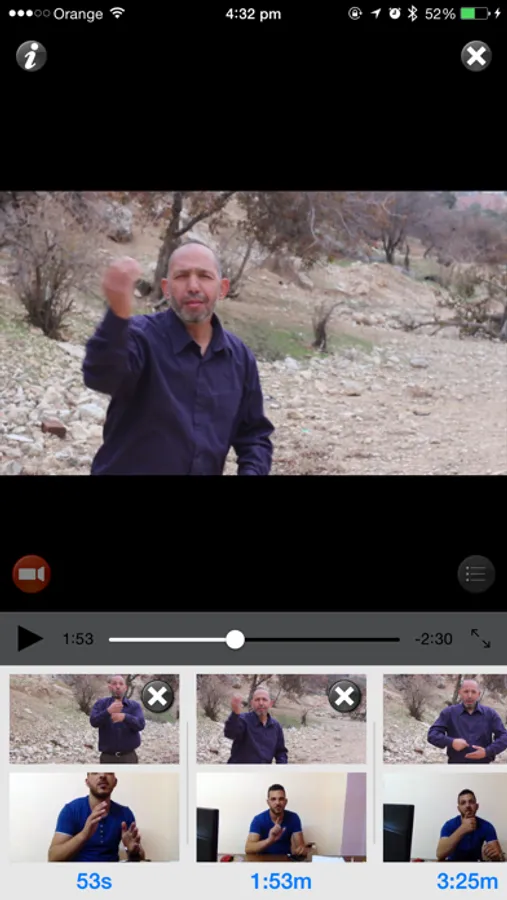 Tap the record button to open the front camera of your device to make a video note and attach it to the current point in the movie. Saved videos will be displayed at the bottom of the 'Movie View' screen with a thumbnail of both the screenshot of the original film to which you've attached your note and a thumbnail of your note. Tap the thumbnail of the original film to go to that point in the movie or tap on the thumbnail of the film note to see that full screen.