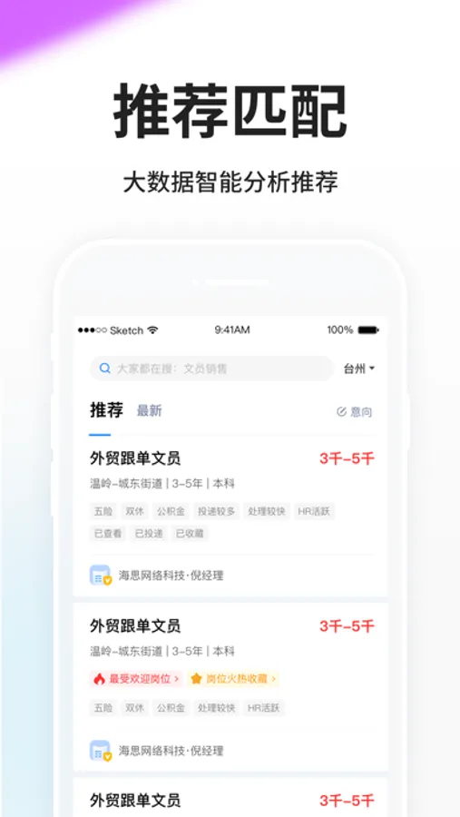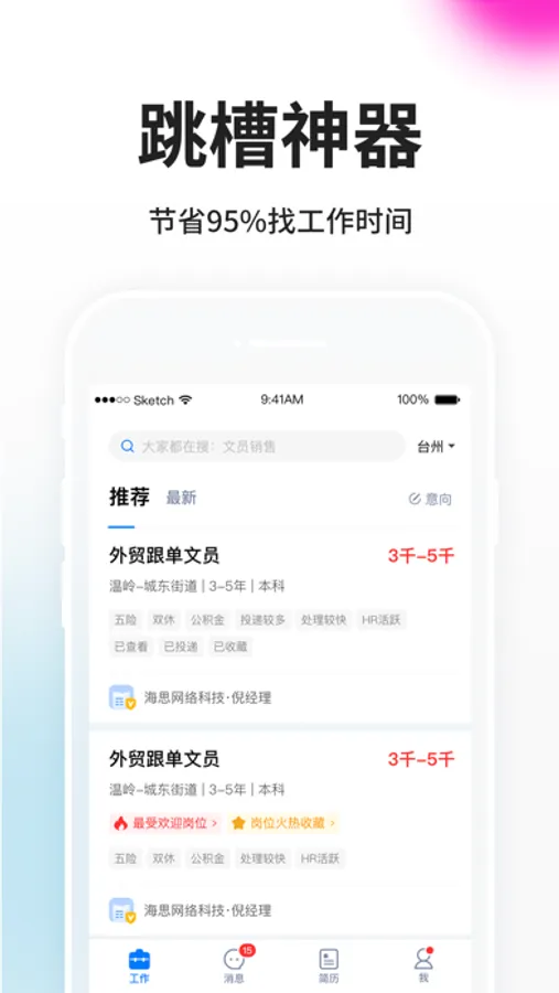 自动匹配你想要找的工作并在首页推荐,提升求职者的针对性,减少重复搜索的麻烦。
