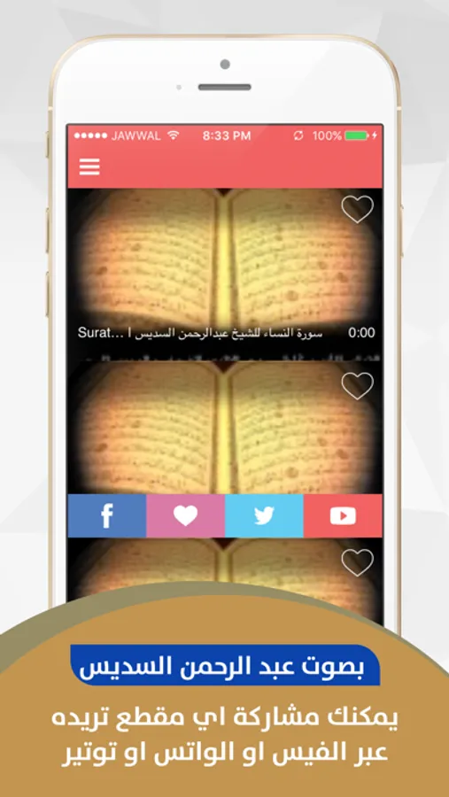 تطبيق المصحف كامل عبد الرحمن السديس لمشاهدة اروع الفيديوهات في حلقات المصحف كامل عبد الرحمن السديس وبجودة عالية وتستطيع من خلال التطبيق تغيير الفيديو ما بين الحلقات وايضا التحكم بالصوت وتكبير وتصغير حجم شاشة الفيديو بكل سهولة .