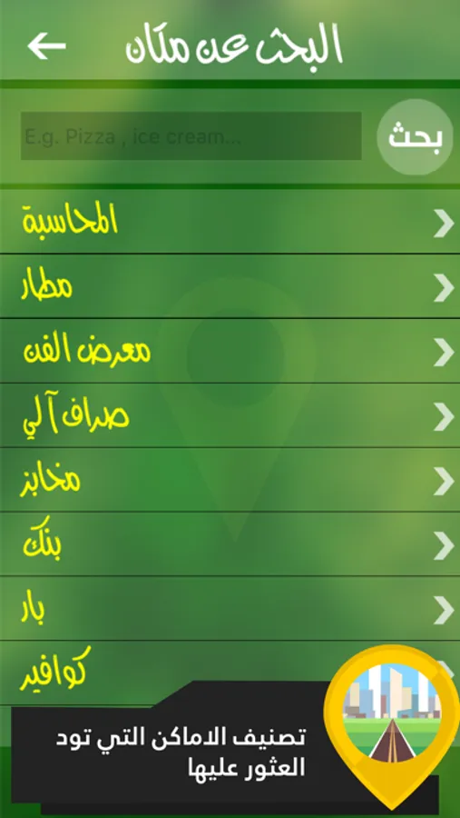 تطبيق دليل اقرب الاماكن لك عبر الخريطة , عندما تسافر او تكون في بلدك تحتاج لاشهر او تبحث عن اهم الاماكن مثل مطار , محلات ,بنوك الخ مع تحديد المكان والوقت للوصول اليه وانت تملك كل التفاصيل عن هذا المكان بسهولة وبنقرة واحدة .