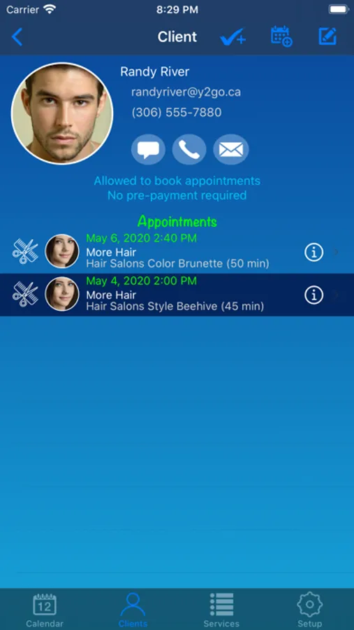Y2go Business manages an advanced and quite unique booking system that pretty much any business can use. It's flexible enough to handle every one from hair stylists to building contractors. You define your services and times when each are available, allowing you to customize which services you provide any hour of any day. Select your time off in a yearly calendar, and the time will automatically be removed from your daily schedule. Other features include client management, status tracking, reduction of no-shows, and the ability to not accept new clients. Y2go also supports internal booking, so you can use it for all booking needs, removing the need to have any other online or paper booking system.