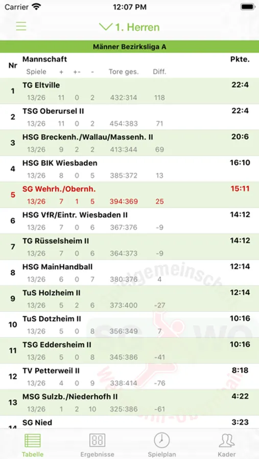 - Alle Mannschaften der SG Wehrheim/Obernhain enthalten, von der Jugend bis zu den Aktiven