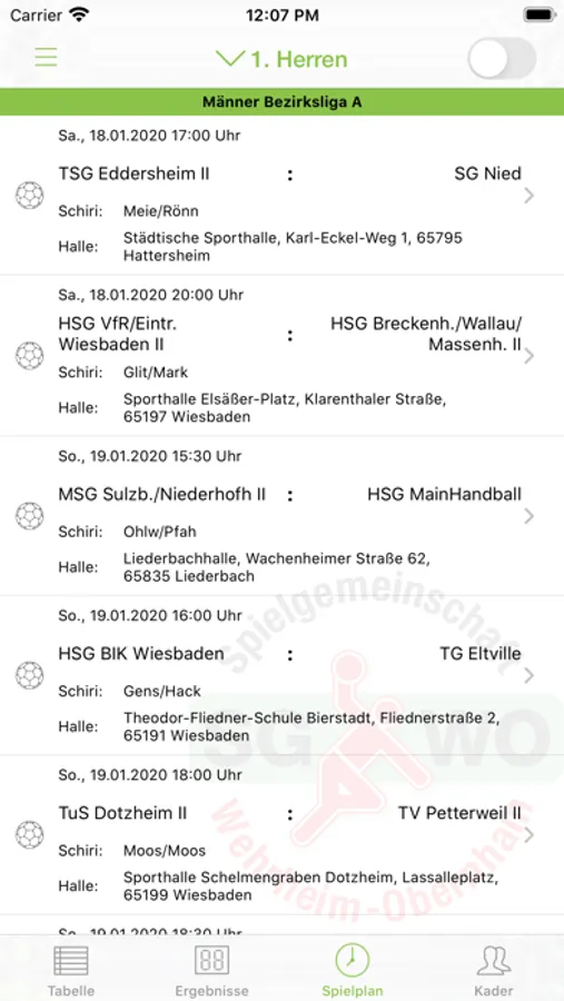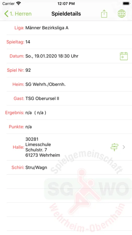 - Heimspielkalender zur Anzeige der nächsten Heimspiele aller SG Wehrheim/Obernhain Mannschaften