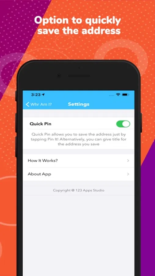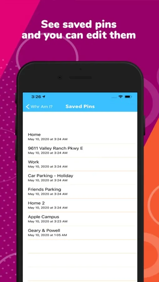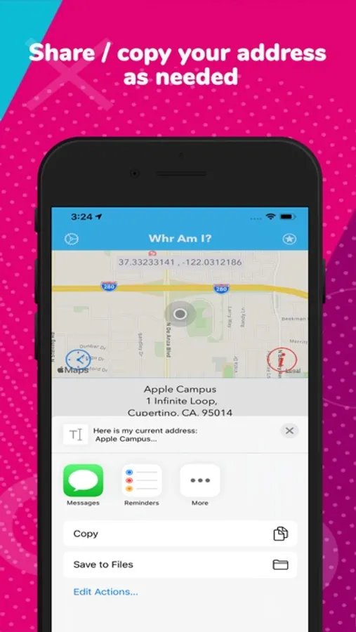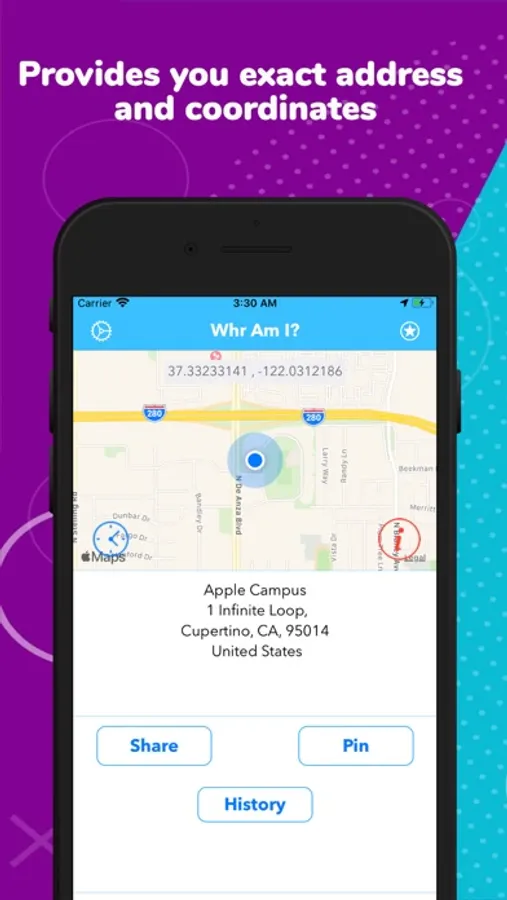 This App provide you current location on map and address. Also it provides the coordinates so even if address is not exact, you can navigate to it. Simple purpose of this app is to let you identify your current location which can be used for navigation. You would be able to share your current location address with friends or anyone you would like. Pin the address so you can go to that address just by tapping on it. Very useful for remembering where you parked your car, Share your current address with someone and they can navigate to it even if it's not known place, even if it's in the middle of the park or ground or theme park.