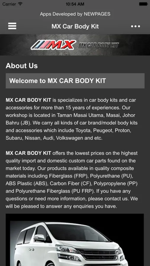 MX CAR BODY KIT is specializes in car body kits and car accessories for more than 15 years of experiences. Our workshop is located in Taman Masai Utama, Masai, Johor Bahru (JB), Malaysia. We carry all kinds of car brand/model body kits and accessories which include Toyota, Peugeot, Proton, Subaru, Nissan, Audi, Volkswagen and etc.