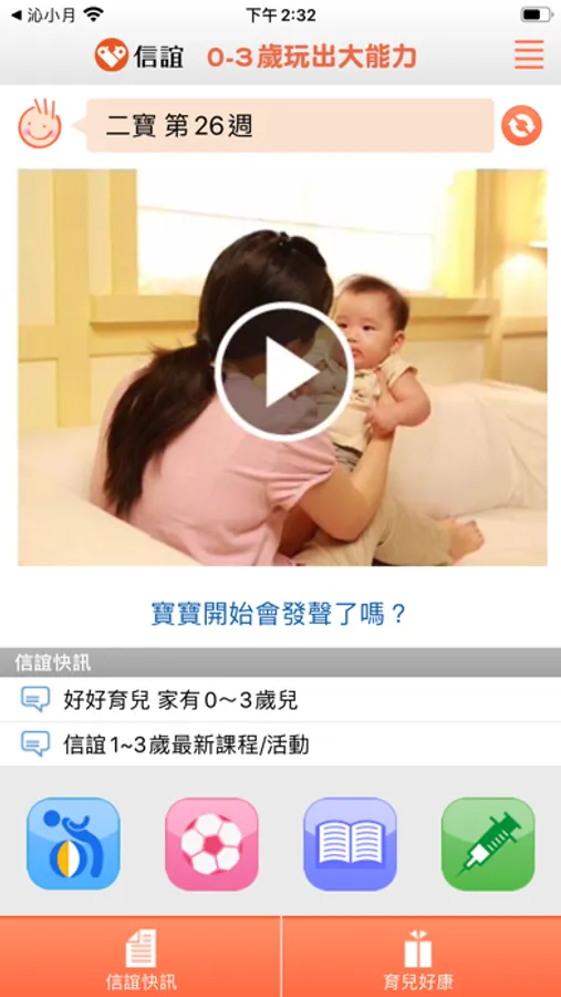 「信誼快訊」提供給喜愛信誼活動及課程的父母第一手消息,鼓勵父母帶孩子一同來參與;「育兒好康」提供各式最受歡迎母嬰產品的優惠和折扣資訊,讓你輕鬆「掌」握最優質便利的親子生活購物訊息。