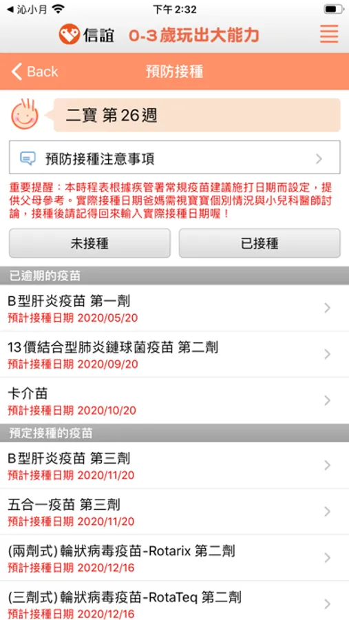 4.「預防接種」育兒工具,提醒父母管理孩子健康。