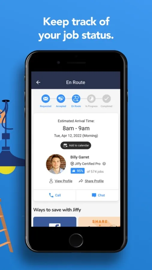 - Get matched with a nearby pro - you’ll see their picture and rating