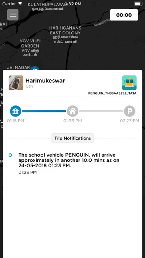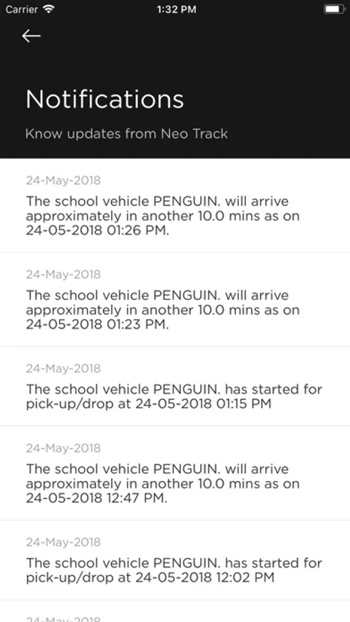 Get Notification alerts of the bus location and expected time of arrival to your pickup / drop point.