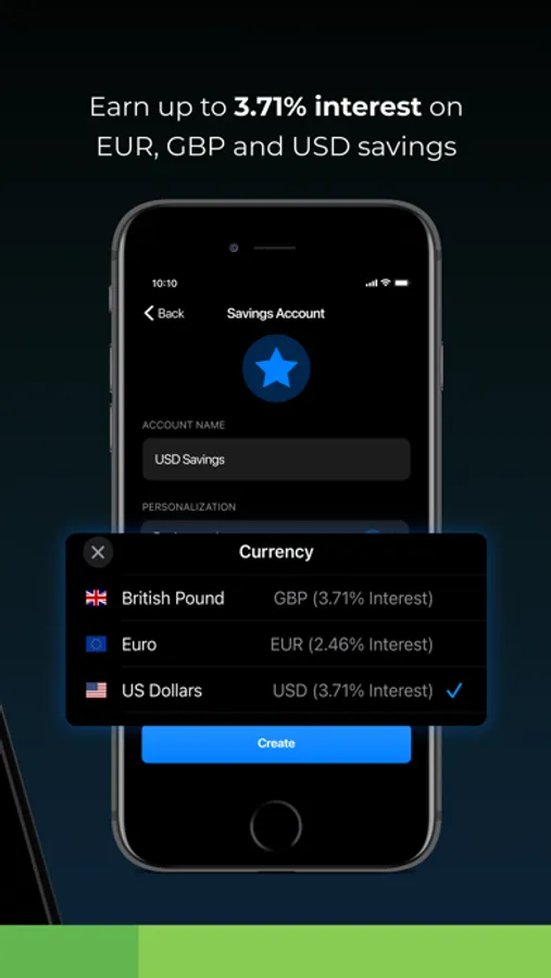 • Easily save in multiple currencies, and earn a massive interest of 3.71% on USD and GBP