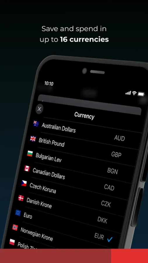 • Choice of over 15 different currencies