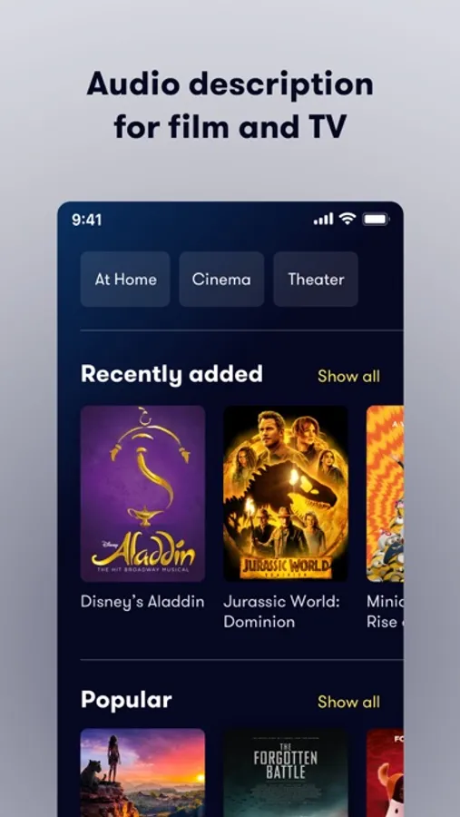 Select the film, episode or show you want to watch and download the corresponding audio description. Put on your headphones and hit ‘play’ as soon as it begins. Earcatch ensures that the audio description is perfectly synchronised with what is happening.