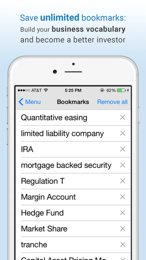 * Save unlimited bookmarks: Build your business vocabulary and become a better investor.