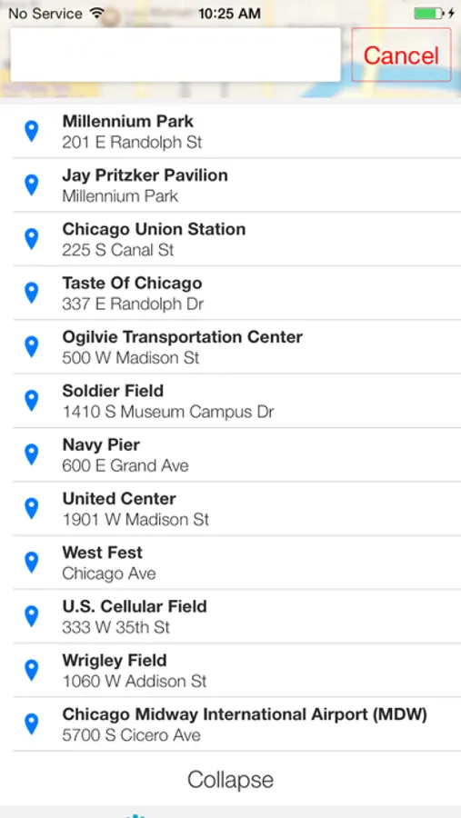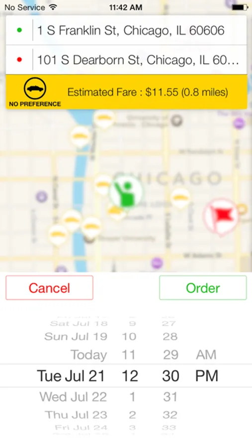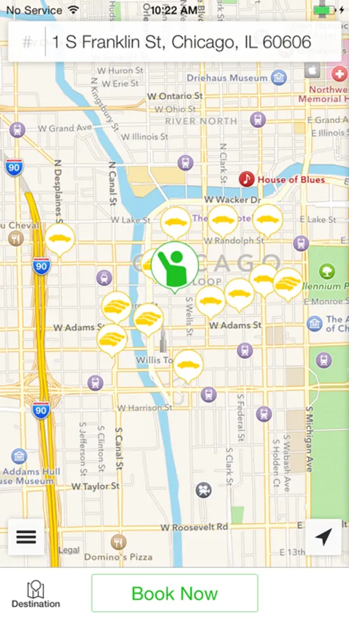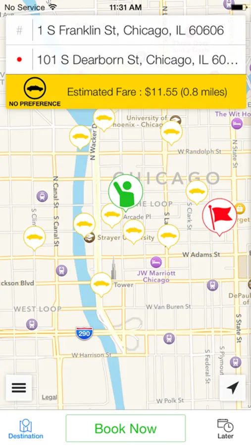 • Get an estimate for fares beginning and ending in Chicago by entering both pick-up and destination addresses.