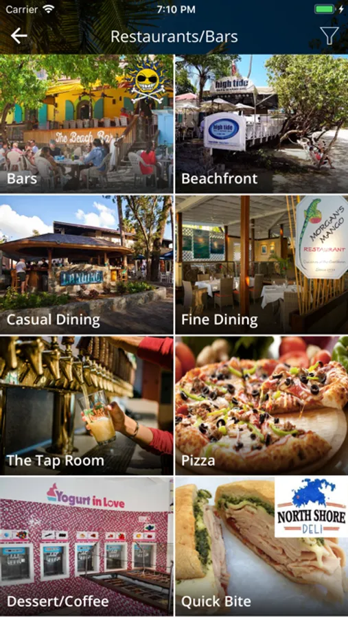 Every restaurant in the app features an up to date menu. Once loaded, menus can be accessed without a data connection or WiFi, allowing you to view the menus while relaxing on the beach.