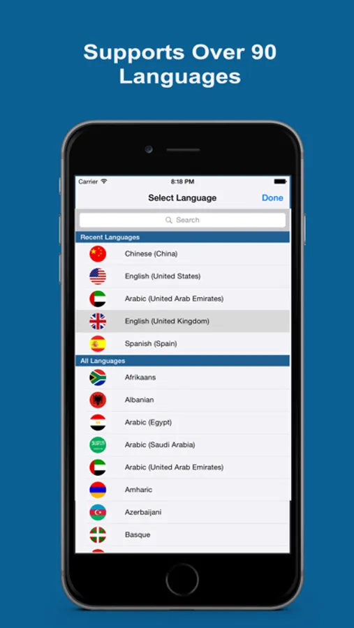 Afrikaans,Albanian,Amharic, Arabic(Egypt), Arabic(Saudi Arabia), Arabic (UAE), Armenian, Azerbaijani, Basque, Bengali, Belarusian, Bosnian, Bulgarian, Burmese, Catalan, Cebuano, Chinese(China), Chinese(Taiwan), Corsican, Croatian, Czech, Danish, Dutch,English(Australia),English(UK), English(US), English(India), Esperanto, Estonian, Filipino, Finnish, French(Canada), French(Franch), Galician, Georgian, German, Greek, Gujarati, Haitian, Hausa, Hawaiian, Hebrew, Hindi, Hmong, Hungarian, Icelandic, Igbo,Indonesian, Irish, Italian, Japanese, Javanese, Kannada, Kazakh, Khmer, Korean,Kurdish, Kyrgyz, Lao, Latin, Latvian, Lithuanian,Luxembourgish, Macedonian, Malagasy, Malay, Malayalam, Maltese, Maori, Marathi, Mongolian,Nepali, Norwegian,Nyanja, Pashto, Persian, Polish, Portuguese (Brazil), Portuguese(Protugal), Punjabi, Romanian, Russian,Samoan, Scottish Gaelic, Serbian, Shona, Sindhi, Sinhala, Slovak, Slovenian, Somali, Southern Sotho, Spanish(Spain), Spanish(Mexico), Sundanese, Swahili, Swedish, Tajik, Tamil, Telugu, Thai,Turkish, Ukrainian, Urdu, Uzbek, Vietnamese, Welsh, Western Frisian, Xhosa, Yiddish, Yoruba, Zulu