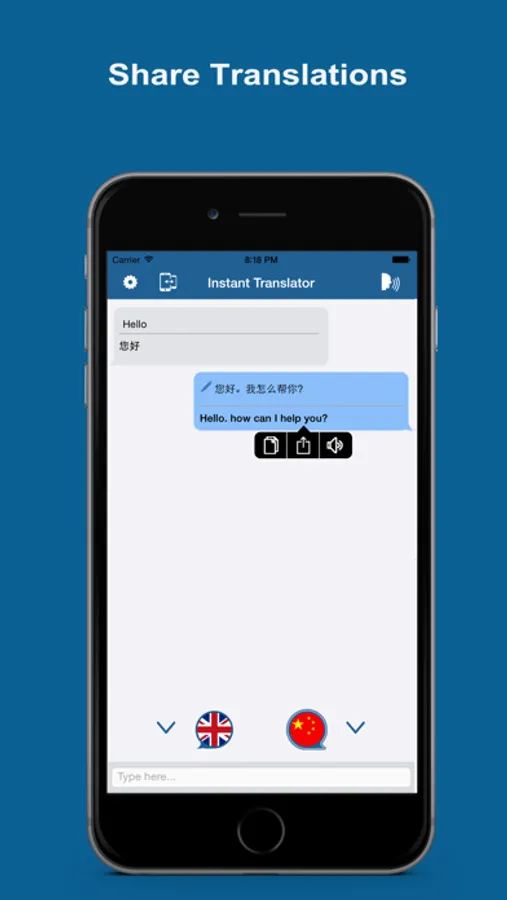 Type or copy text from emails, messages etc to get them instantly translated to more than 90 languages.