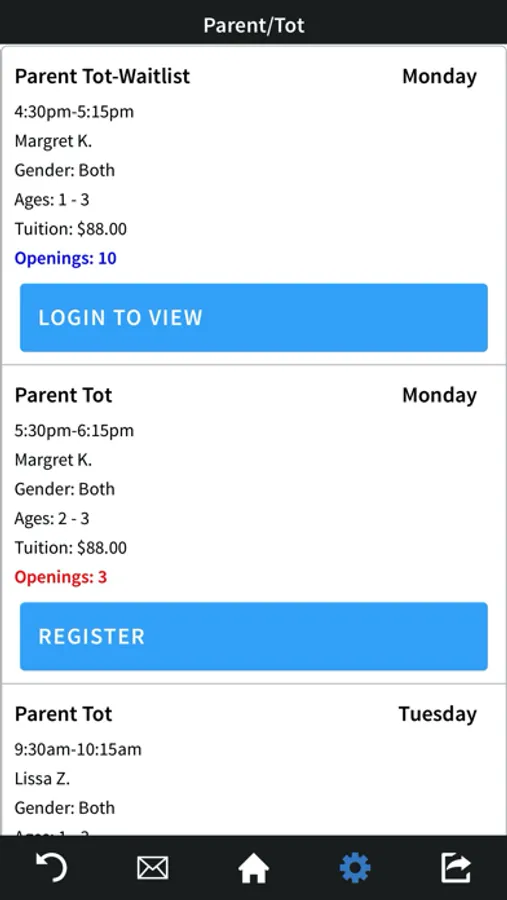 - Have a class in mind? Search by program, level, day, and time. You can register or even put yourself on a Wait List.