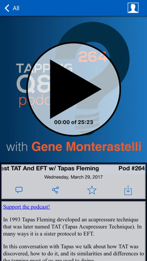 With this app you are always connected to the latest episodes and the show. Quickly star episodes and save them to a list so you can easily enjoy them over and over! This app has a Car mode too! Rotate your phone to display larger playback controls. It is the best and most convenient way to access Tapping Q & A.