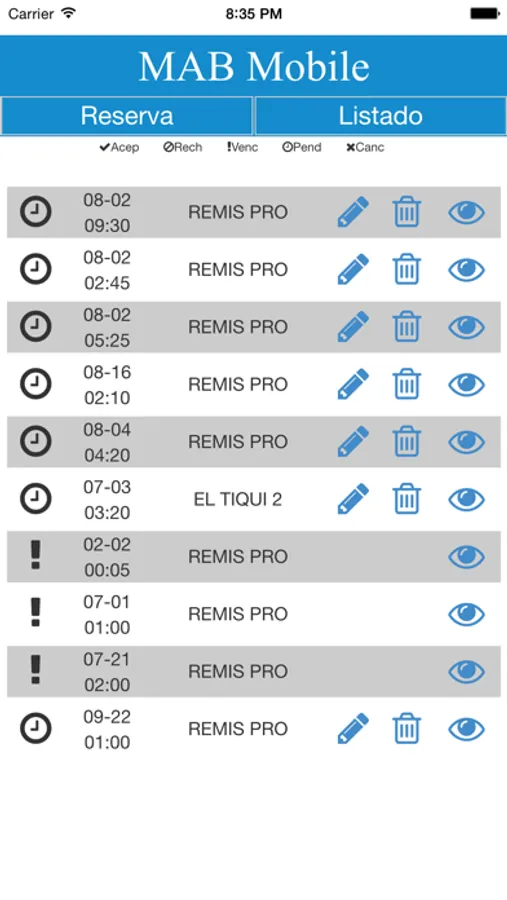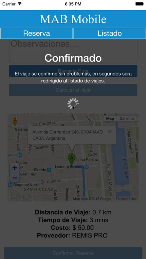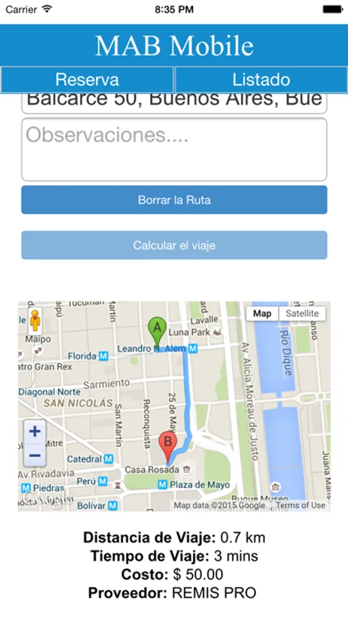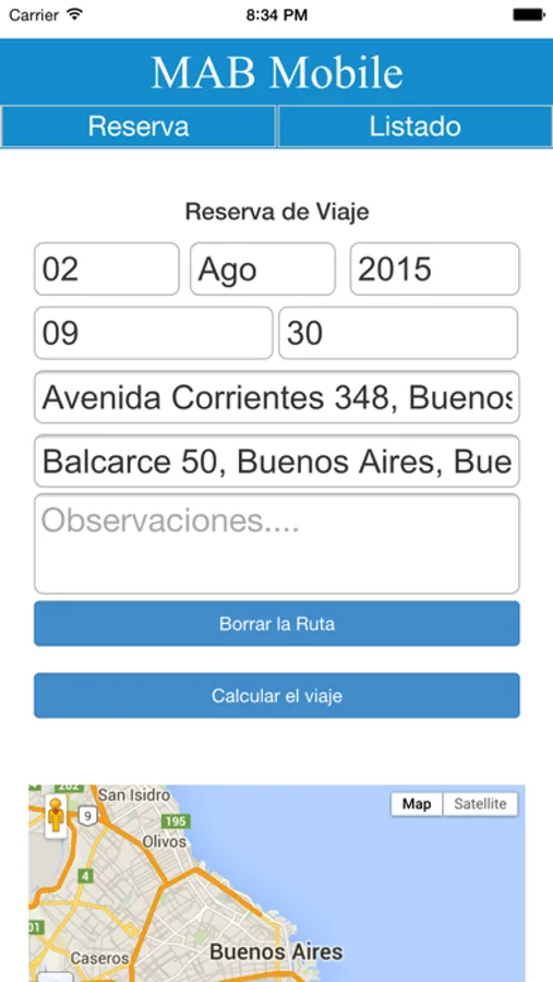 MAB Mobile permite solicitar un remise de su empresa de manera remota sin necesidad de comunicarse telefónicamente ni vía mail, informando a Ud. el auto asignado para su viaje, además de registrar su reserva, los kms aproximados a recorrer y el valor aproximado del servicio.