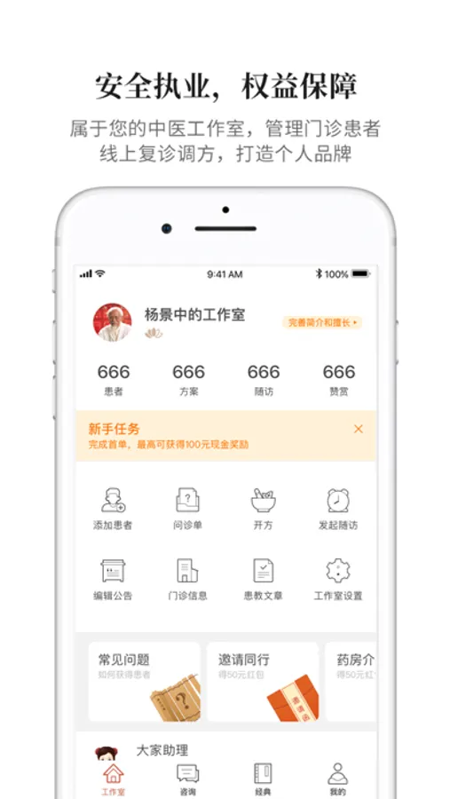 —注册认证后即为您打造中医专属线上诊所,患者通过扫码关注医生工作室,与医生随时线上咨询,提高中医的问诊效率,帮助医生在积累患者和诊疗经验的同时,也更好的获得口碑,提高收入。