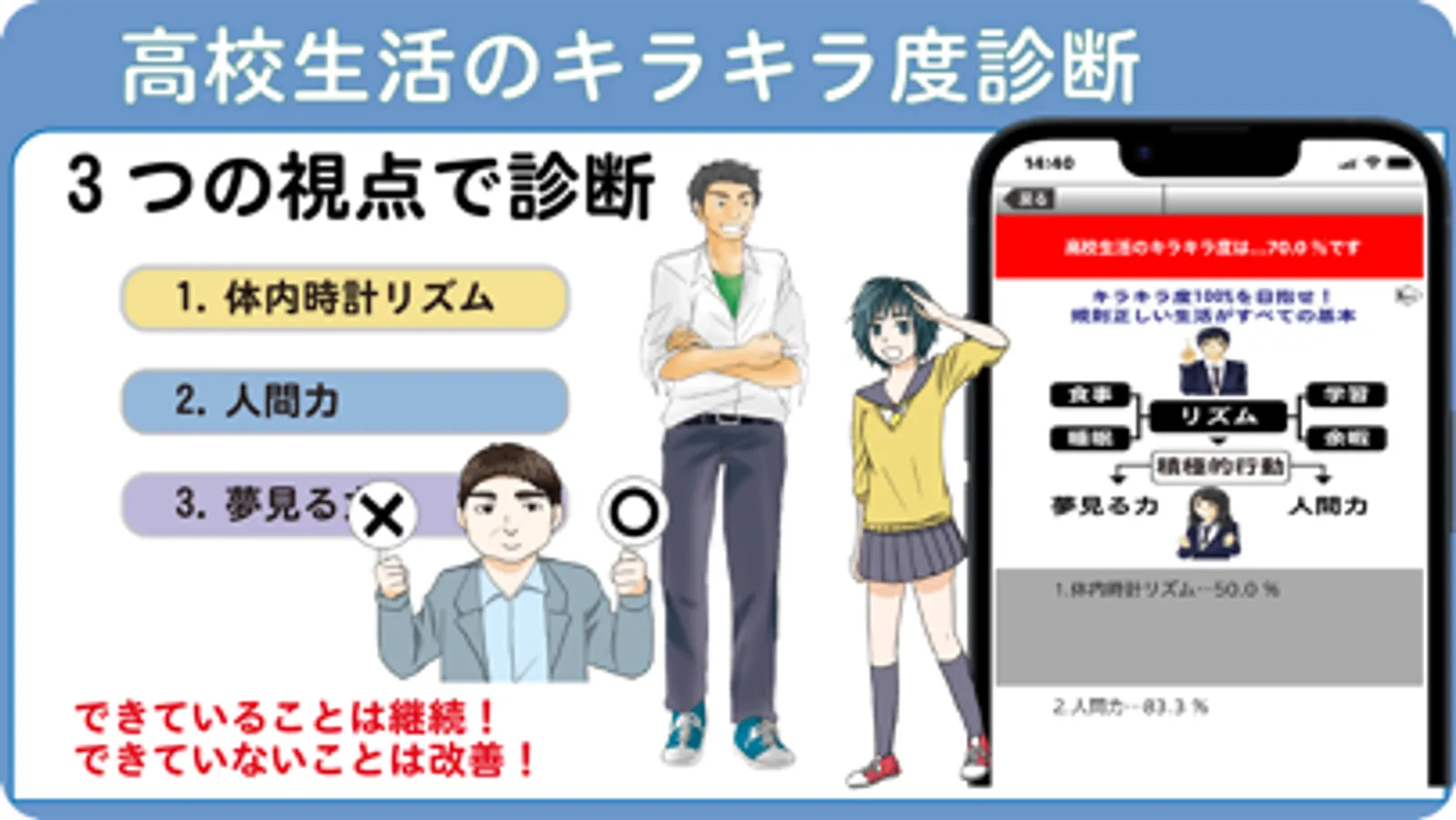 体内時計、人間力、夢見る力の3つの視点から判定します。