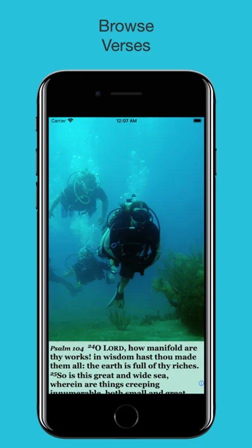 Easy to use! The simplicity of Psalm Daily Quotes allows you to focus on the words of scripture without distraction. The day's verse is displayed upon launch. Scroll up for longer verses. For browsing the collection of 365 images and verses, touch mid-right to advance one day. Touch mid-left to go back one day. Touch top of image for random verse. Touch "i" for help and other features such as sharing via Facebook or email.