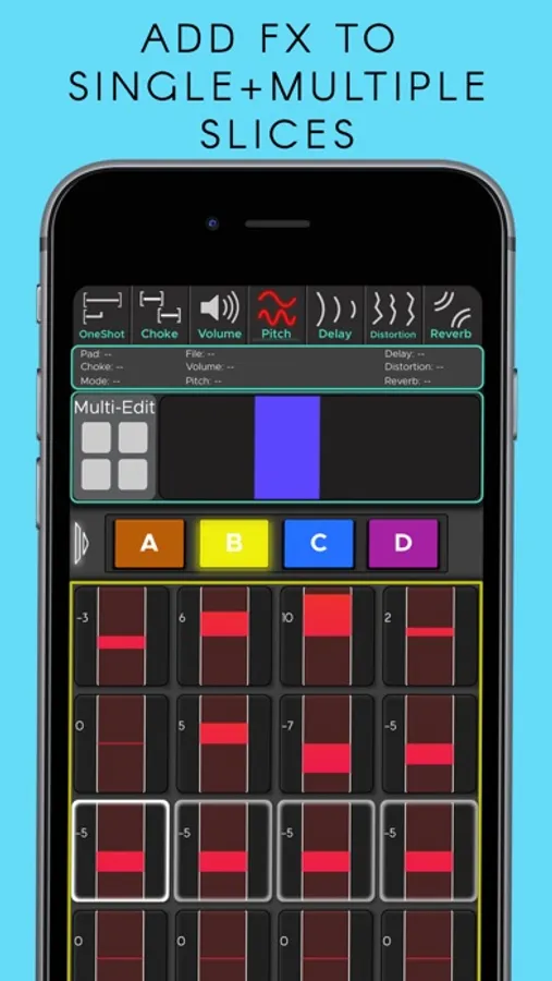 Applying and routing reverb, delay and distortion can be done to a single slice or to multiple slices. Add some smoothness and control with the one-shot/hold mode and choke groups.