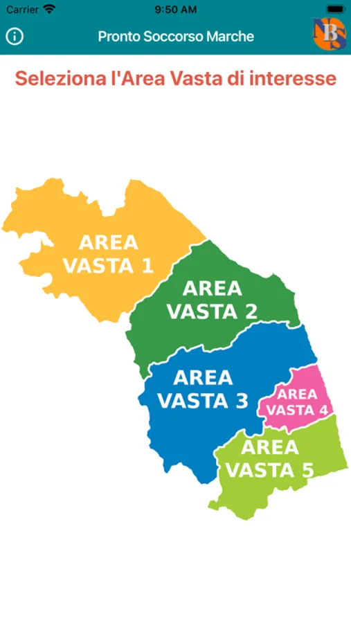 Una volta scelta la zona di interesse, verranno mostrate le strutture presenti e il numero di pazienti in attesa.