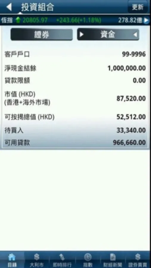 -投資組合全掌控: 投資者能於iPhone手機查閱其持股量、交易狀況及過往紀錄、購買力。