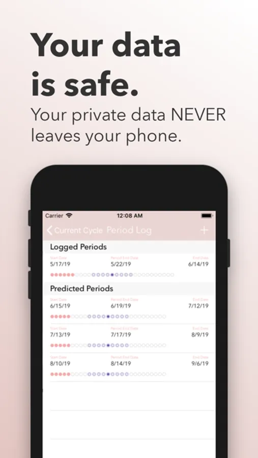"Why are period apps so complicated and why do they need my email? Period is simple, discreet and my data never leaves my phone." - Ruth S.