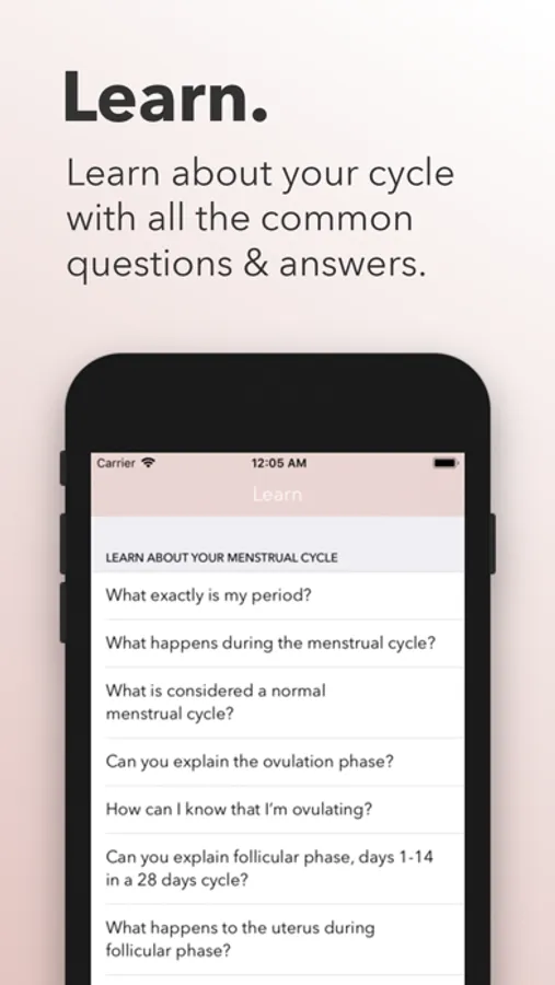 A whole section with common questions you were afraid to ask, explaining every detail about your menstrual cycle, regularly update with new questions and answers.