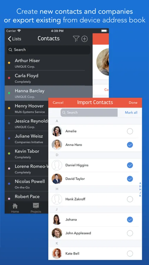 • Create new contacts and companies; add all the important information about your contact or company. Either you can import existing contact from your device Address Book