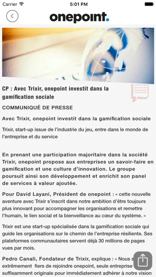 Vous voulez consulter les offres d'emplois de Onepoint ? Accéder à nos actualités et blogs ?
