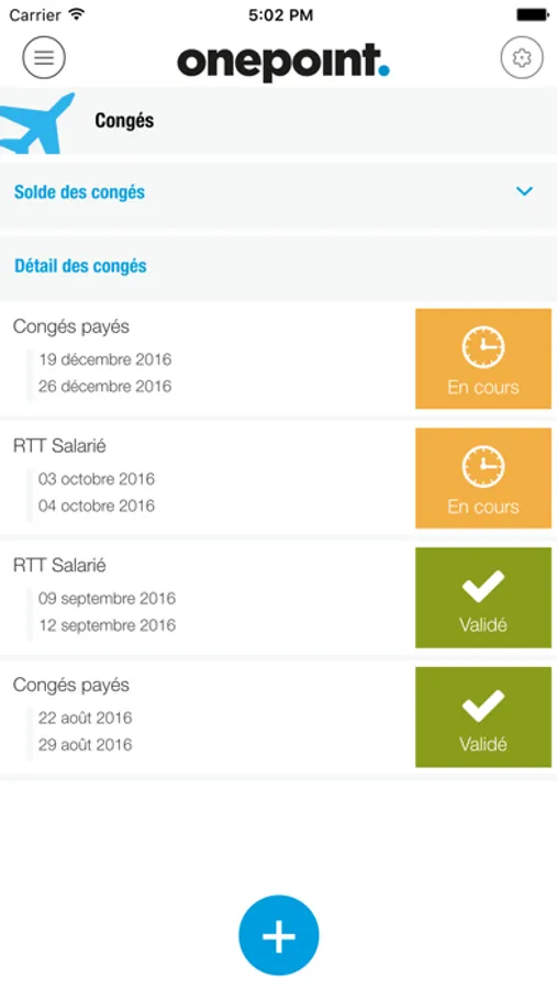 Pour les collaborateur Onepoint un espace personnalisé vous permet de :