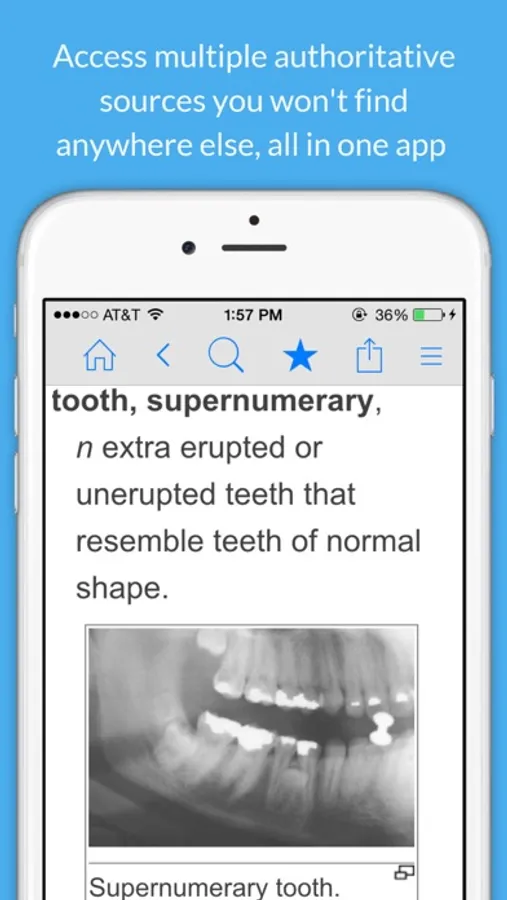 Whether you’re a dentist, dental hygienist, dental student, or just looking to learn more about dentistry, this free dental dictionary app can help you find clear, in-depth definitions of dental terminology right on your iPhone or iPad. Search across multiple disciplines in more than a dozen dictionary and encyclopedia sources, including entries on:
