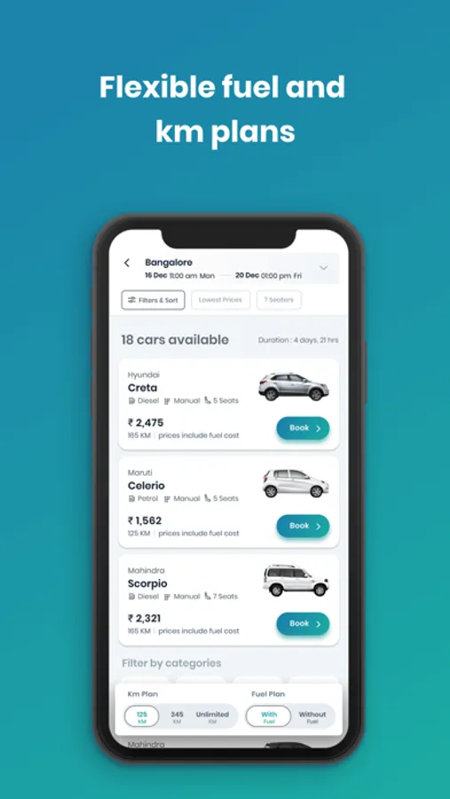 • Available car hire across segments such as SUVs, ultra-luxury, hatchbacks and sedans
