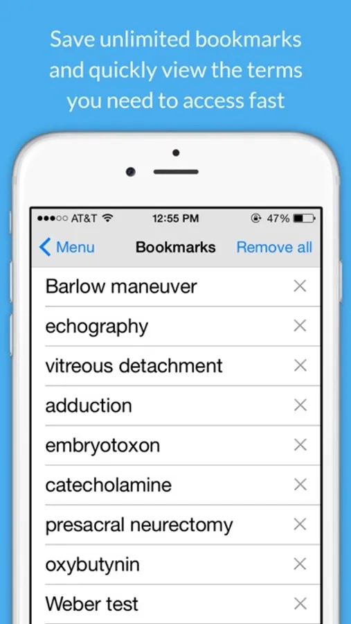 * Save unlimited bookmarks and quickly view the terms you need to access fast.