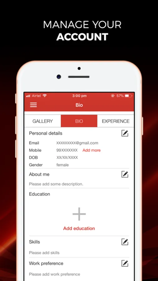 - Artists receive job/audition notifications and recommendations based on their experience, location and expertise