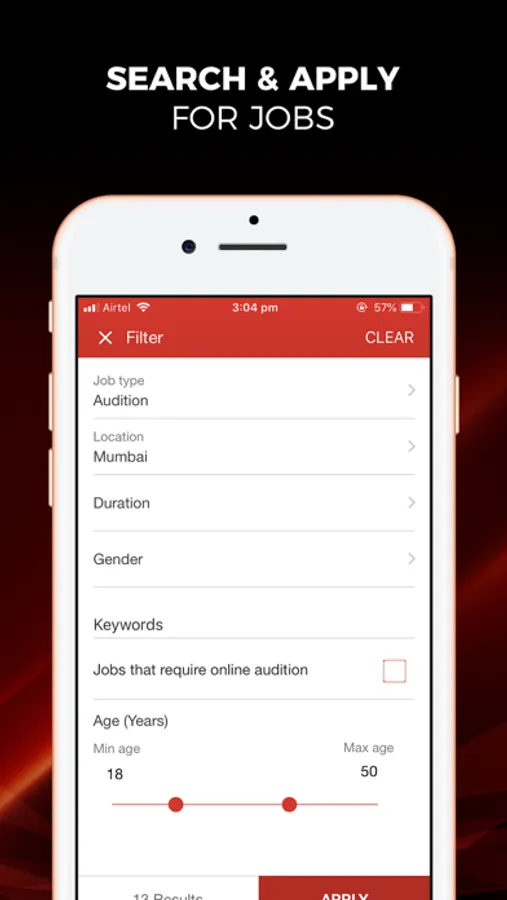 - Artists can search and apply for jobs/auditions based on various filtering parameters