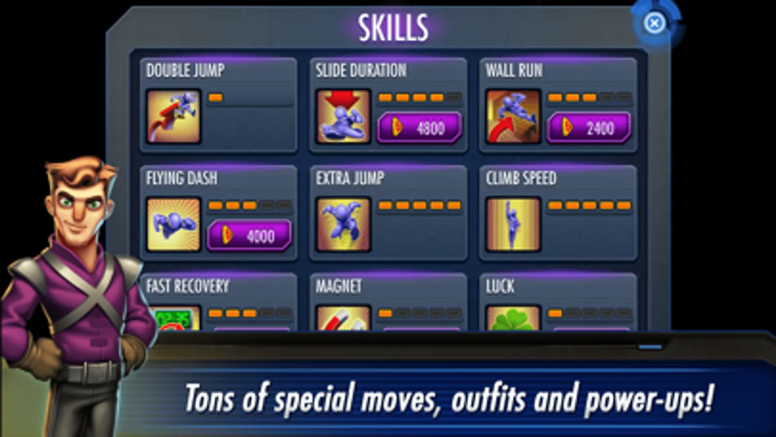 Jack can upgrade his skills to jump, slide, walk over the walls, make a flying dash and much more. Using these skills you will be able to go further each time in a train full of traps and deathly devices!