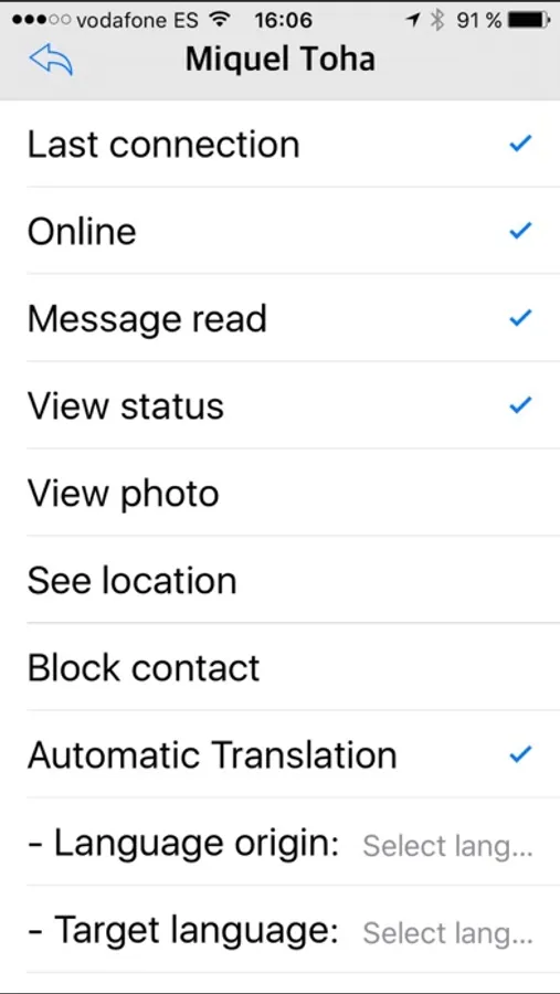 * Allows you to configure contact by contact, who sees you online, who sees your location, last connection. It's up to you!!!!!!