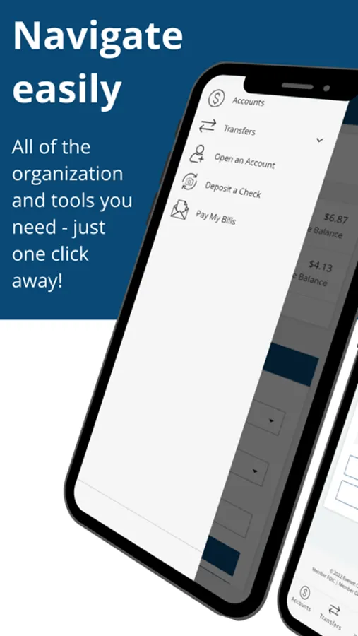Easily access all of your accounts and features right at your fingertips with our mobile app. Manage your accounts, deposit checks, make transfers, pay bills and more!