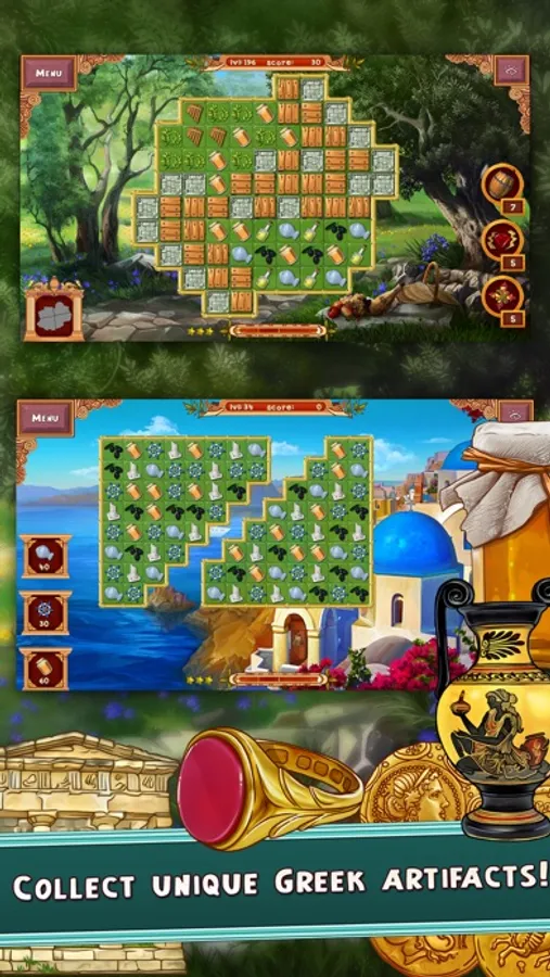 Collect more than 90 artifacts on the awesome match-3 levels while travelling to the most beautiful sights. Mighty power-ups will help you to set the highest score.