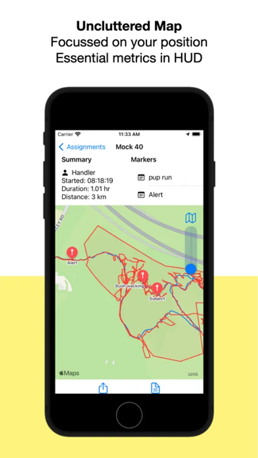 You may pause recording for an indefinite amount of time to keep the recording clean from travel to and from assignment area. Assignment area created in other software can be imported through geoJSON format. Track data can be imported through GPX. Recorded tracks including markers can be exported with GPX and geoJSON formats via messages, email, airdrop or directly into receiving applications. All exported data is automatically stored in your iCloud application folder for easy retrieval for your computer based applications. Lokate can export in HTML format; this creates a simple static webpage which can be shared or opened in document applications for further editing and printing.