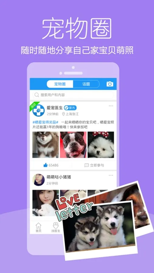 3. 晒萌宠:晒家中爱宠美图、找领养信息,和朋友分享家中宠物的生活趣事、点点滴滴。